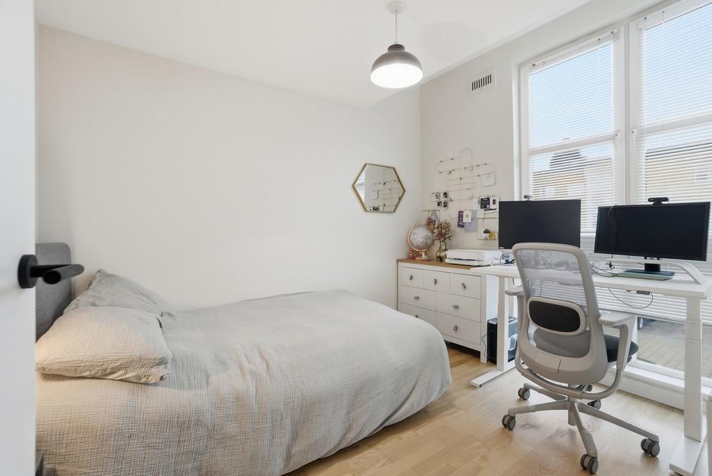 To the rear, the garden has been landscaped with newly installed decking, creating a sunny and low-maintenance outdoor space ideal for relaxing and entertaining.