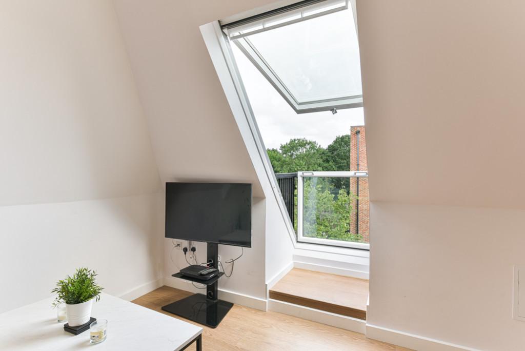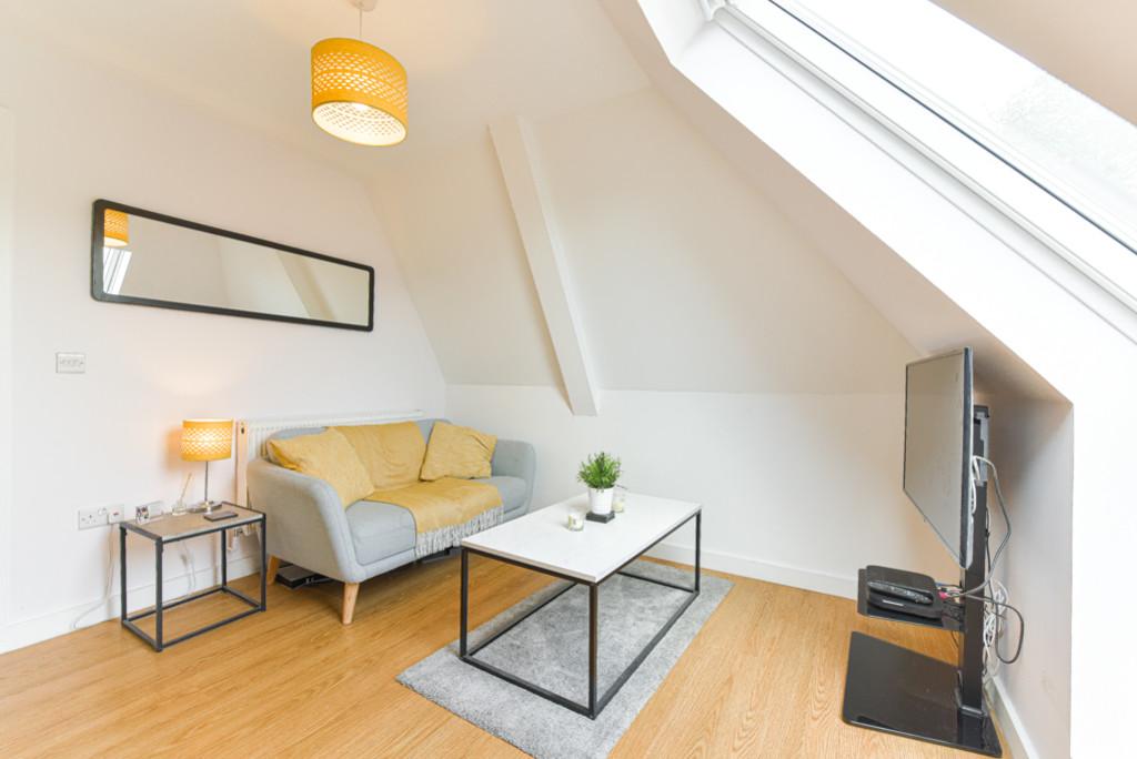 A stunning light and bright, one double bedroom top floor flat which has been recently upgraded by the current owners. Offering a good sized double bedroom with space for freestanding wardrobes and a recently refitted luxury bathroom. The simply stunning living area is open plan to the kitchen, complete with soft close units and built in appliances. The property further benefits from a Velux Cabrio style balcony and a useful storage cupboard in the hallway.