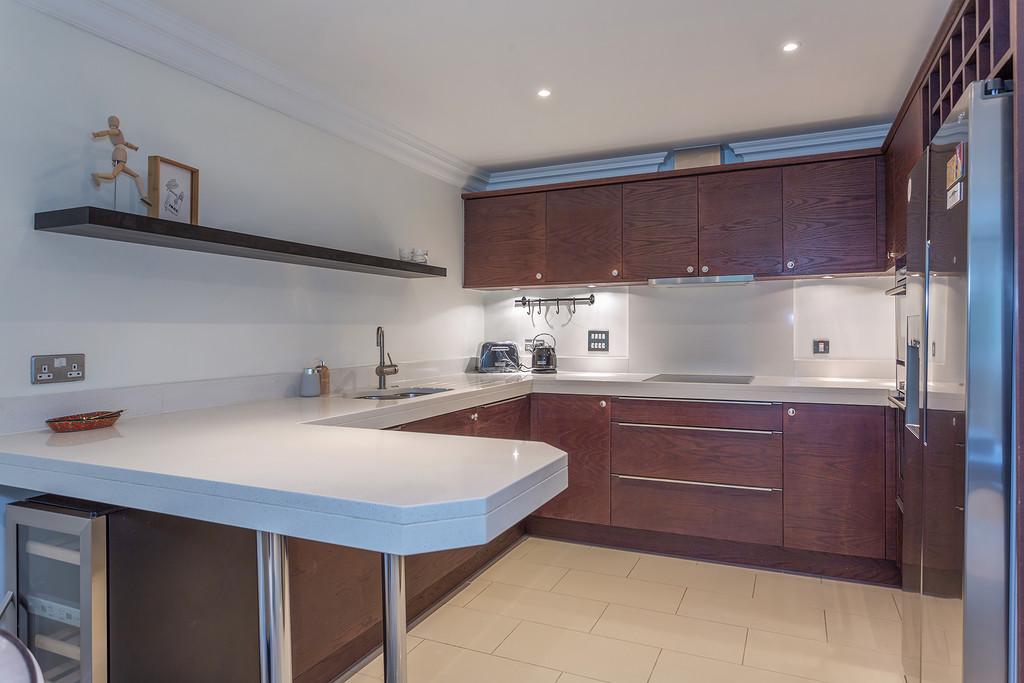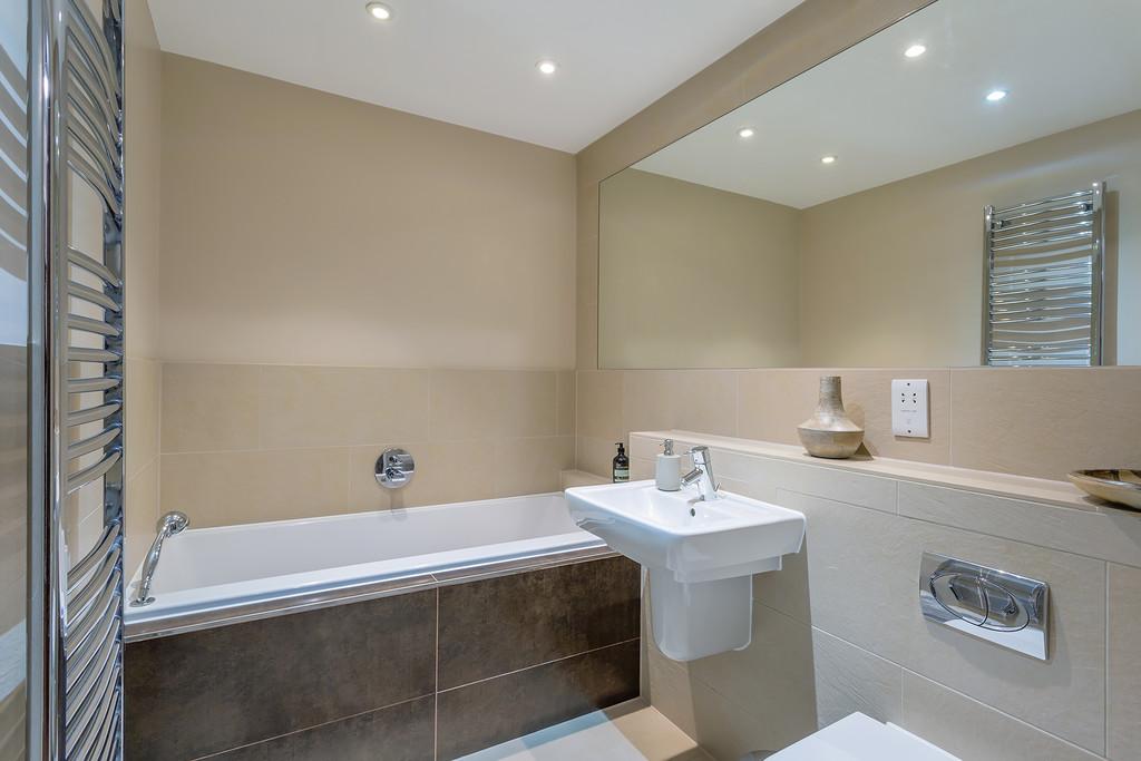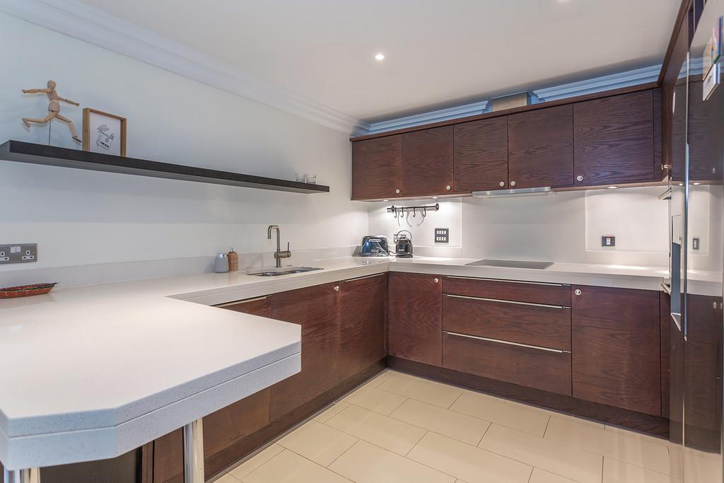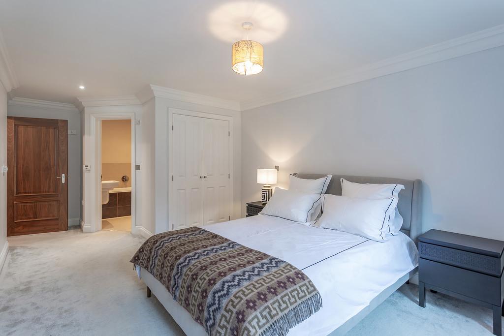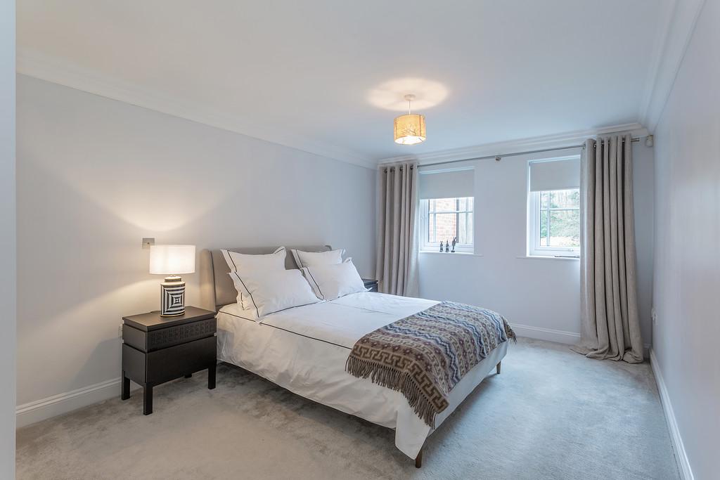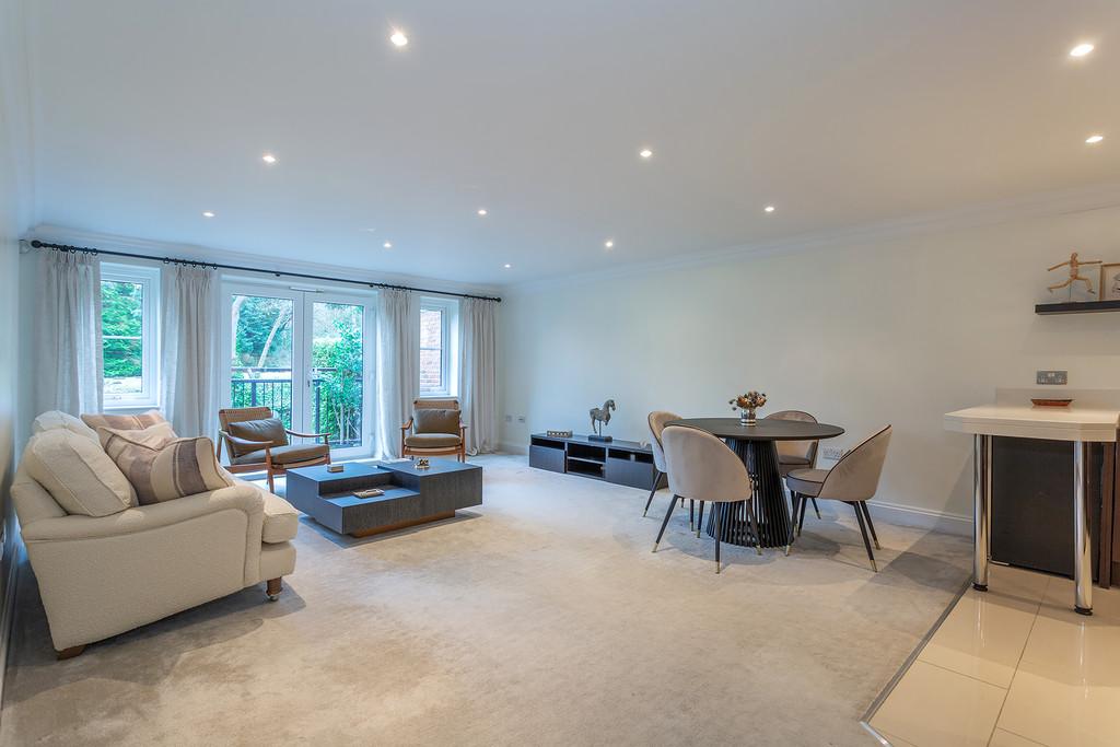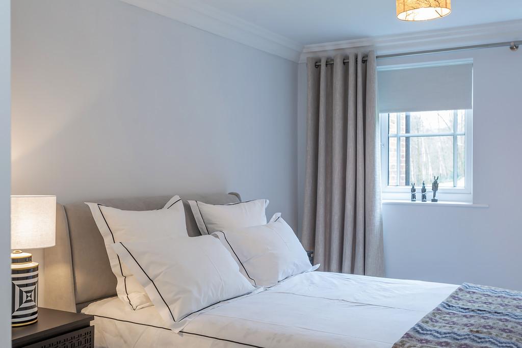 The accommodation briefly comprises : Two double bedrooms, two bathrooms, a thoughtfully designed contemporary and stylish open plan kitchen and living area complemented by underfloor heating. The contemporary style kitchen comes complete with stone worktops, fully integrated Siemens appliances and an American style fridge/ freezer. The bathrooms are furnished with Villeroy and Boch luxury suites, thermostatically controlled showers, ceramic tiled floors, and full width polished edge mirrors above the basins. Externally the apartment has the benefit of private gardens which lead onto the three acres of communal gardens with access to the Lake.