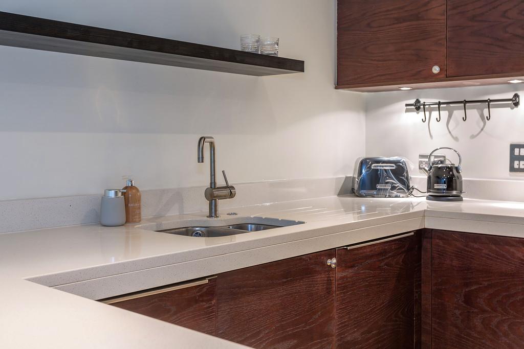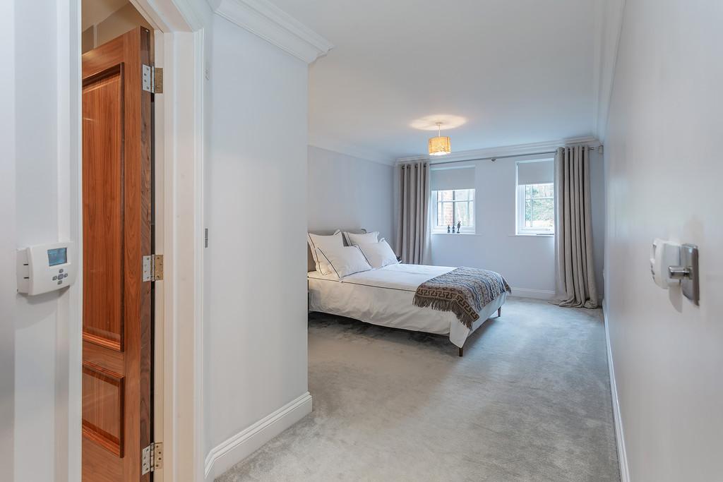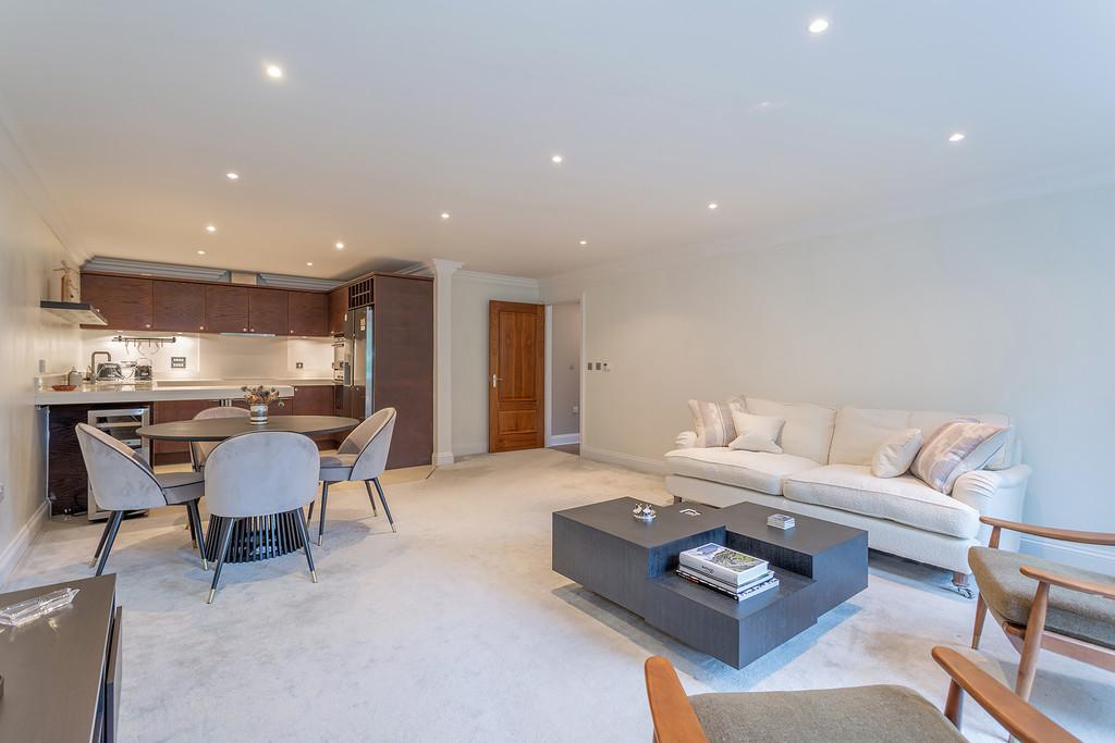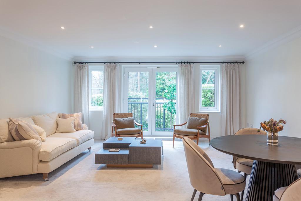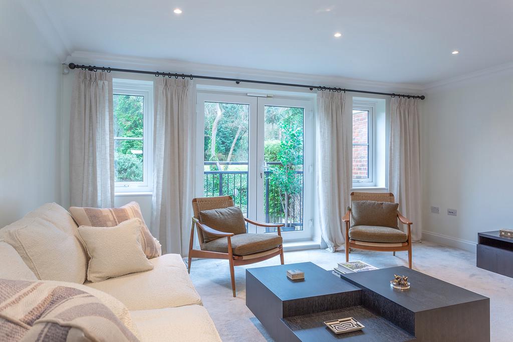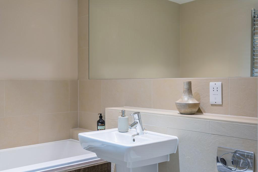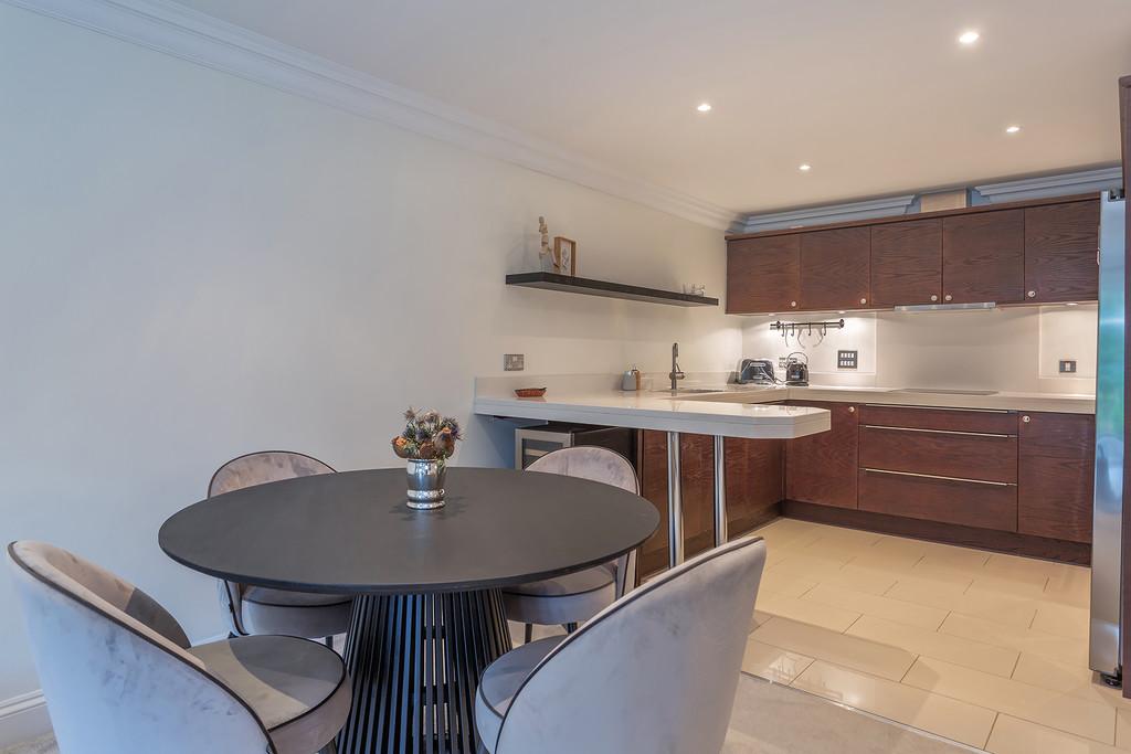 The accommodation briefly comprises : Two double bedrooms, two bathrooms, a thoughtfully designed contemporary and stylish open plan kitchen and living area complemented by underfloor heating. The contemporary style kitchen comes complete with stone worktops, fully integrated Siemens appliances and an American style fridge/ freezer. The bathrooms are furnished with Villeroy and Boch luxury suites, thermostatically controlled showers, ceramic tiled floors, and full width polished edge mirrors above the basins. Externally the apartment has the benefit of private gardens which lead onto the three acres of communal gardens with access to the Lake.
